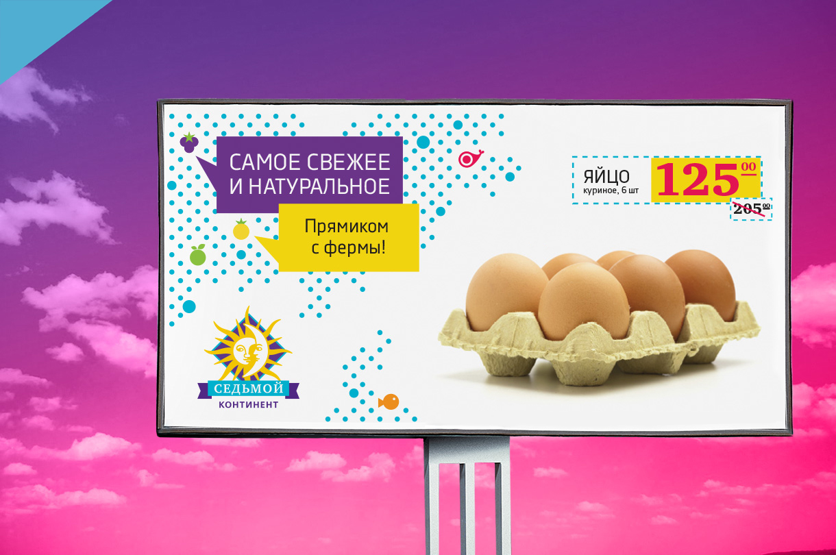 Агентство Times Branding в 2014 году разработало новую айдентику сети супермаркетов «Седьмой Континент». Перед агентством стояла задача сделать образ бренда более молодым, современным и комфортным, создать простые правила коммуникации бренда с потребителем, разработать максимально удобную систему оформления огромного количества носителей фирменного стиля.