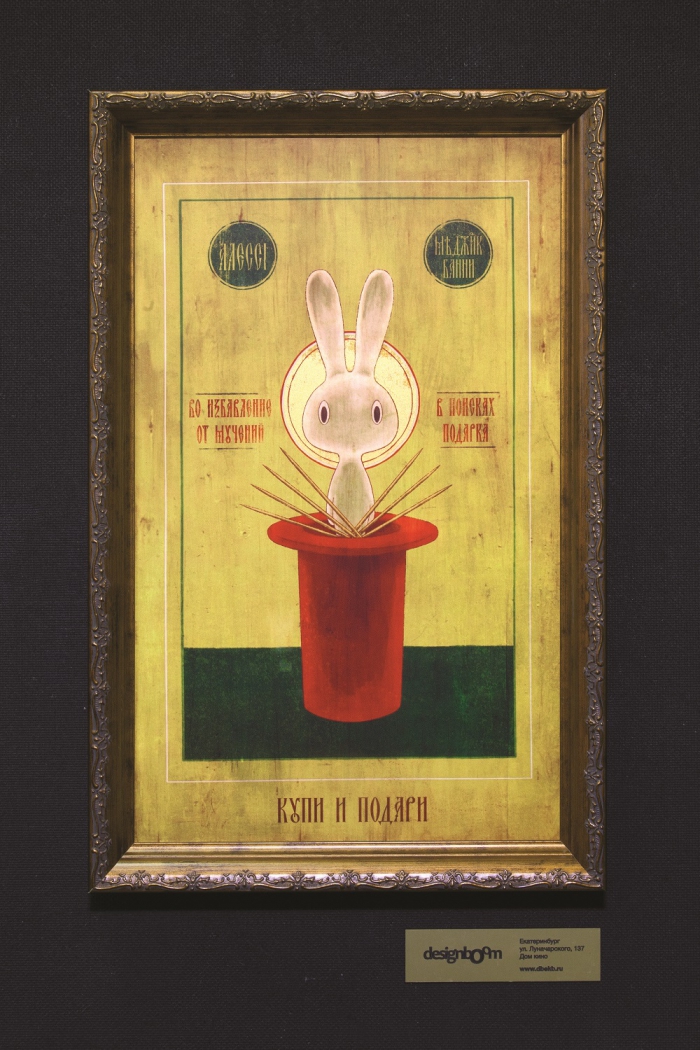 Агентство StreetArt в 2014 году разработало провокационную рекламную кампанию для дизайнерского магазина DesignBoom, продающего уникальные предметы интерьера, декора и подарки. Креаторы создали серию стилизованных под иконы рекламных плакатов и развесили их в лучших барах и ресторанах Екатеринбурга.