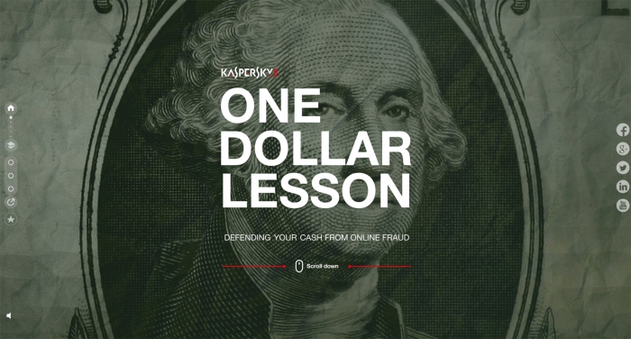 Интернет-платежи давно стали частью повседневной жизни, но многие до сих пор считают, что их онлайн-кошелек не нуждается в защите. Именно поэтому «Лаборатория Касперского» совместно с агентством Grey Moscow запустила проект One Dollar Lesson - интерактивный сайт, который наглядно демонстрирует основные принципы онлайн-безопасности.