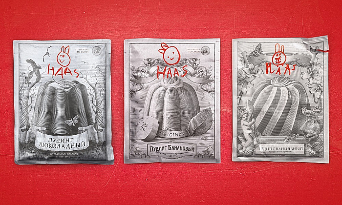 Агентство Depot WPF разработало необычный дизайн упаковки для пудингов HAAS, производимых австрийской компанией Ed. Haas International. Разрабатывая проект, креаторы обнаружили, что многие российские потребители считают пудинги не очень вкусным и неинтересным десертом.
