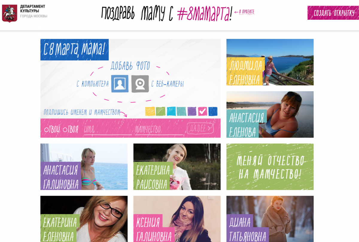 В 2015 году агентство BBDO Moscow разработало для Департамента культуры г. Москвы социальный проект «#8 мамарта». Цель проекта «#8мамарта» была напомнить мамам в преддверии международного женского, как сильно мы их ценим и любим. Благодаря сайту 8mamarta.ru дочери и сыновья могли поменять свое отчество на «мамчество».