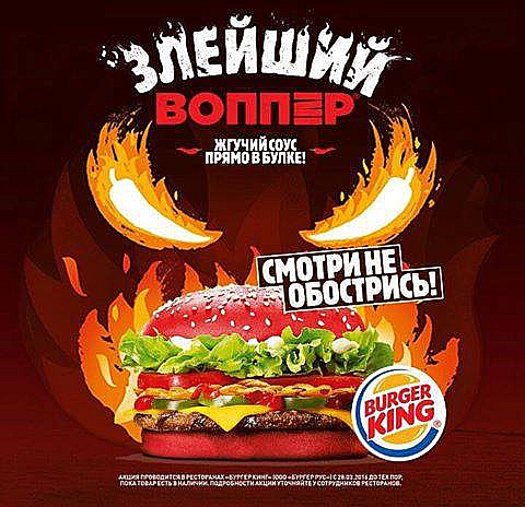 Рекламный баннер «злого» бургера от Burger King появился накануне в качестве заставки в бесплатном wi-fi столичной подземки. Пользователей поразил локальный слоган кампании - «Смотри не обострись», явно отсылающий к процессу дефекации.