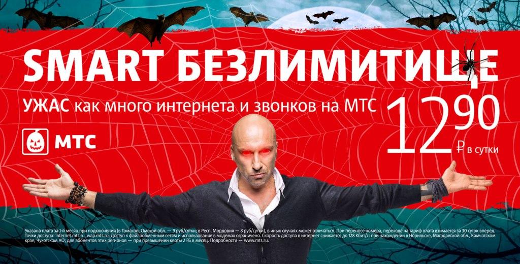 BBDO Moscow разработало рекламную кампанию МТС специально к Хэллоуину. Ключевая часть кампании – наружная реклама в центре Москвы, посвященная тарифу Smart «Безлимитище». На макетах присутствуют главные атрибуты праздника: пауки, вороны, полная луна. Кроме того, МТС преобразила к Хеллоуину свои страницы в соцсетях. Вышли также «страшные» ролики и реклама на радио.