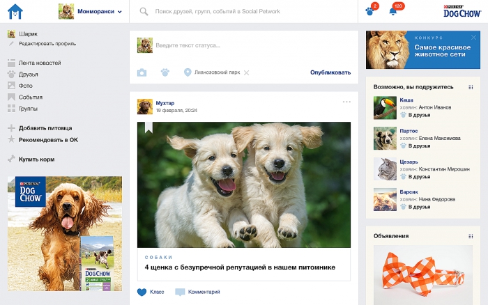 Пользователи OK.RU могут создавать профили для своих любимцев, общаться и делиться новостями в новом разделе социальной сети.
