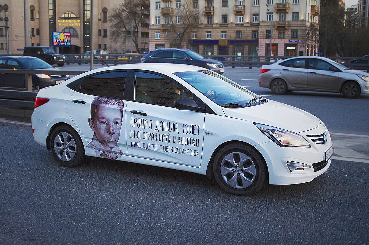 Cервис заказа такси Uber совместно содружеством волонтеров "Поиск пропавших детей" и при поддержке МВД РФ реализовали благотворительный проект, призванный помочь найти пропавших без вести детей: портреты малышей появились на такси, работающих под брендом Uber.
