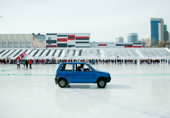 РА «Восход» и страховая компания «Смартполис» провели первые в мире соревнования по автокерлингу. Четыре команды по десять человек состязались в прицельном толкании автомобилей «Ока». На весеннем льду стадиона «Юность» спортсмены устроили 50 ДТП.