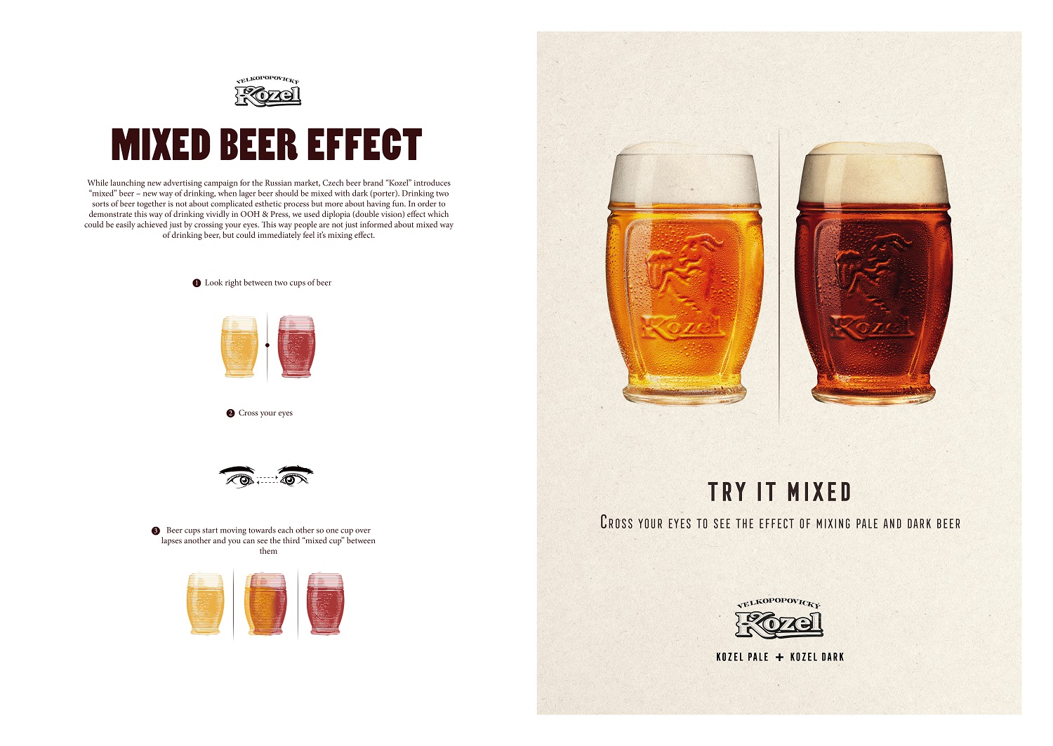 Креатищики агентства BOOTLEG (BBDO Russia Group) и бренд Efes предложили смешать темное и светлое пиво. А представленный постер помогает увдеть, какое пиво получится в итоге - достаточно скрестить глаза.