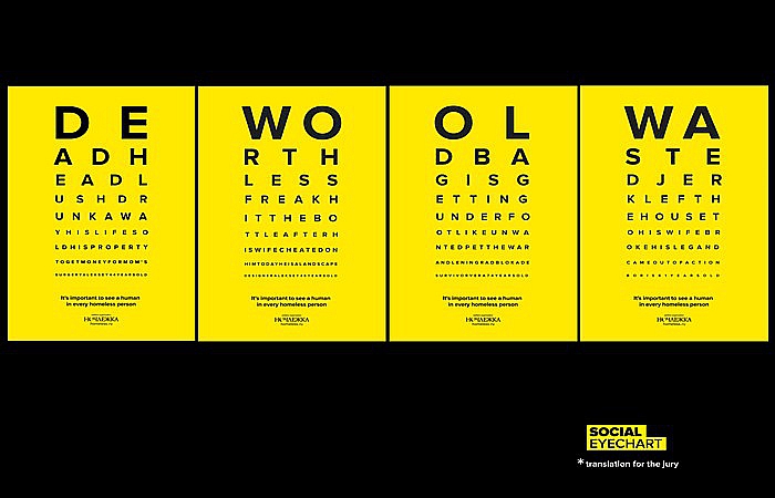 Серия постеров в виде таблицы проверки зрения раскрывает проблему бездомности