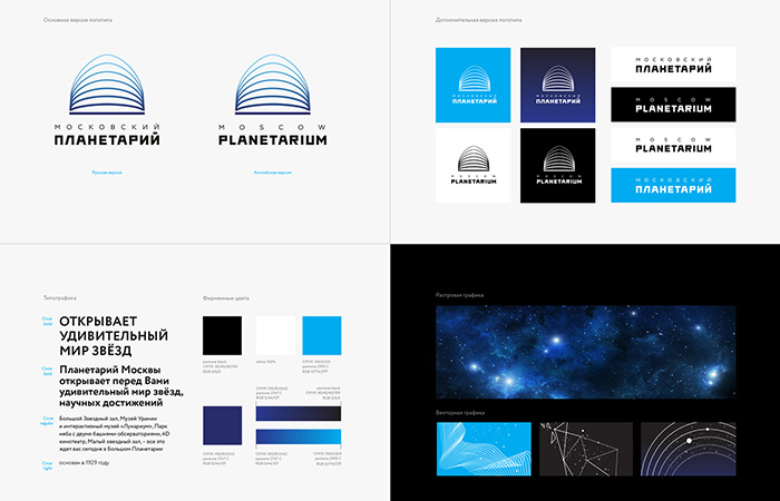 В новом логотипе сохранилась визуальная преемственность со старым знаком, удалены избыточные декоративные элементы и сделан смысловой акцент на куполе — основном конструктивном элементе Планетария, который условно переносит посетителей на разные космические орбиты. В логотипе заключена идея, что Космос, к которому можно «прикоснуться» в Планетарии, становится ближе и понятнее.