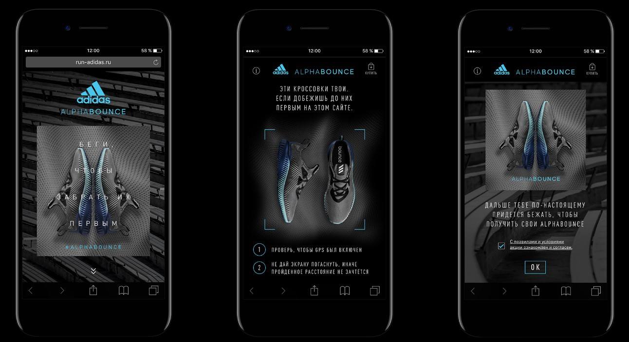 Был создан уникальный сайт, где прокрутка страницы начинается лишь тогда, когда пользователь бежит. По всей «длине» сайта были размещены десятки пар кроссовок. Любой пользователь мог получить их бесплатно, если добежит до них первым.