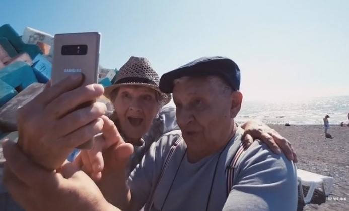 В первом ролике нового сезона Samsung YouTube главными героями стали 84-летняя Любовь Крупнова и 86-летний Роберт Фишман. Ролик был снят на смартфон Galaxy Note 8 режиссером Иваном Сосниным на песню «Пообещай» группы MGZAVREBI.