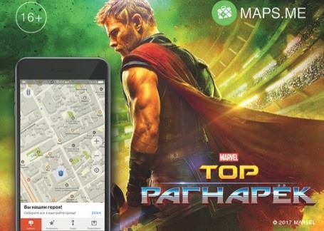 В новой версии приложений MAPS.ME на картах Москвы и Санкт-Петербурга появились специальные иконки «Шлем», «Молот» и «Портал». Каждая иконка соответствует герою, артефакту или миру вселенной MARVEL. Нажав на иконку, пользователь попадет на специальный сайт и узнает, что именно он нашел. Собирая артефакты, можно знакомиться с вселенной MARVEL и персонажами, которые ее населяют, а также узнавать интересные факты о фильме «Тор: Рагнарёк».