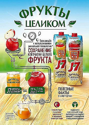 Компания PepsiCo запустила новую линейку соков – J7 «Фрукты Целиком». Специально для этой линейки было разработано мобильное приложение с использованием технологии дополненной реальности на упаковке.