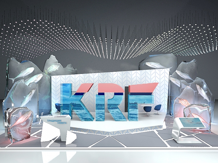 В круг задач также вошли брендирование судов и формирование дизайн-проекта выставочного стенда с изготовлением сопутствующей полиграфической и сувенирной продукции для выставок. В основу стиля легли традиционные «морские» цвета – вся палитра синего и голубого. Также был добавлен контрастный лососевый цвет - теплый розовый оттенок с коралловым подтоном. Стиль – графический, чистый и минималистичный, подчеркивающий технологичность компании, ее современность и универсальность. Так сформировалась дизайн-концепция «Ледяной горизонт», главный символ которой – граница, отделяющее небо от земли, верха от низа, профессионала от любителя. Это прямая линия, подчеркивающая верное направление движения из одной точки в другую.
