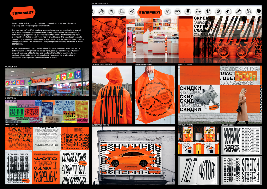 Была создана система айдентики, которая определяет настоящий тон коммуникаций сегмента жесткого дискаунтера, как в устной, так и визуальной форме. Айдетику может воспроизвести любой кассир в любом из 200 магазинов по всей России и некоторых странах СНГ. И что особенно важно – этот язык понятен как молодой аудитории, так и тем, кого относят к возрастной аудитории.