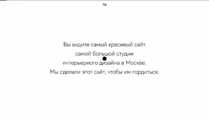 Точка всегда находится в центре каждой страницы. Она является функциональным элементом, выполняющим роль меню: кликнув на нее, можно попасть в нужный раздел сайта.