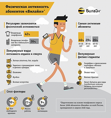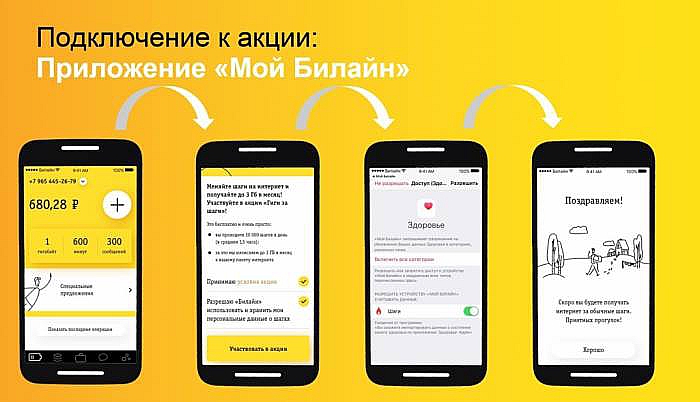 Количество пройденных шагов будет отражаться в приложении оператора, которое интегрирует данные из приложений «Здоровье» на iPhone, а также Google Fit для Android. При разработке акции «Гиги за шаги» «Билайн» проанализировал, насколько физически активны его абоненты. В телефонном опросе, проведенном в апреле 2018 года, приняло участие более 3000 пользователей, мужчины и женщины в возрасте от 16 до 65 лет. В рамках исследования 42% владельцев смартфонов отметили, что регулярно занимаются физической активностью. Более 71% следят за показателями своих тренировок с помощью смартфонов, а 43% ставят план по количеству пройденных шагов в сутки.