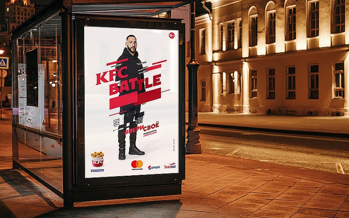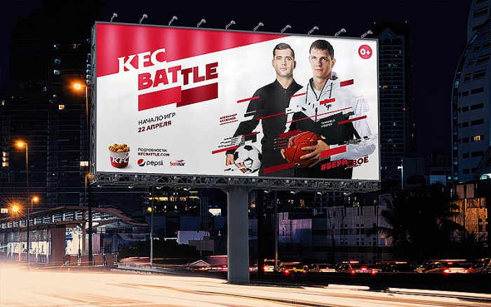 Проект включает в себя несколько спортивных и творческих направлений. Агентству DDVB было поручено создать цельную систему визуальных коммуникаций KFC BATTLE, объединяющую все направления фестиваля.