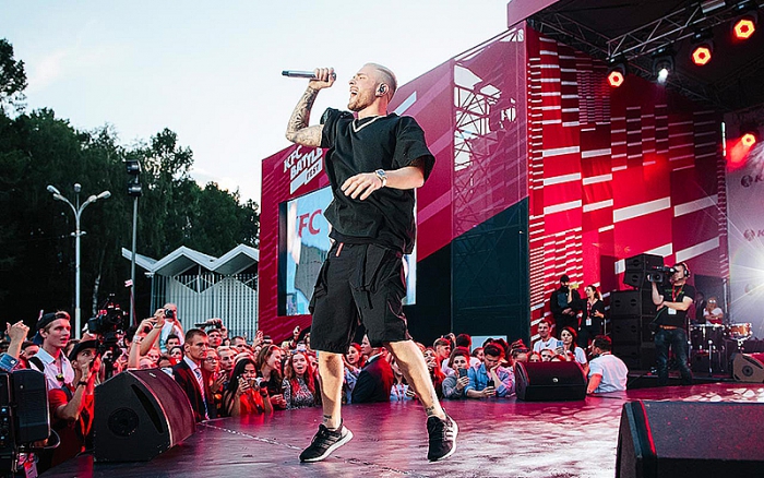 Отдельные динамичные элементы фирменного стиля позволили объединить многочисленные форматы рекламных носителей с помощью визуального языка: от оформления сцены до дизайна одноразовых стаканчиков.