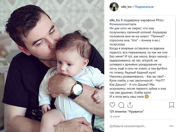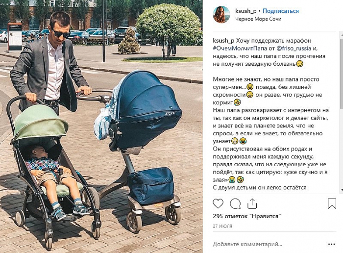 Бренд вышел на территорию пап, что произошло впервые среди категории детского питания в мире. Весь год Friso призывал мам делиться трогательными историями о своих чудо папах в соцсетях. Для этого прошел флешмоб в Instagram с #ОчёмМолчитПапа и выпущены ролики, героями которых стали разные настоящие папы со своими детьми.