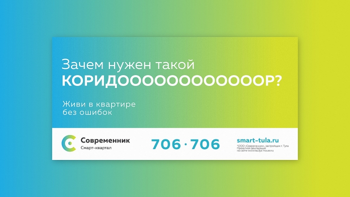 В серии вдохновляющих принтов для наружной рекламы «Соль» продемонстрировала недостатки обычных планировок, которых уже не встретишь в квартирах ЖК «Современник» и призвала жить в квартире без ошибок. В этих лаконичных работах, основанных на тексте, остроумно обыгрываются недостатки «неправильных» квартир. Например, проблема малогабаритной кухни передана фразой «Неудобно на такой КУХ?»