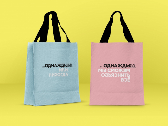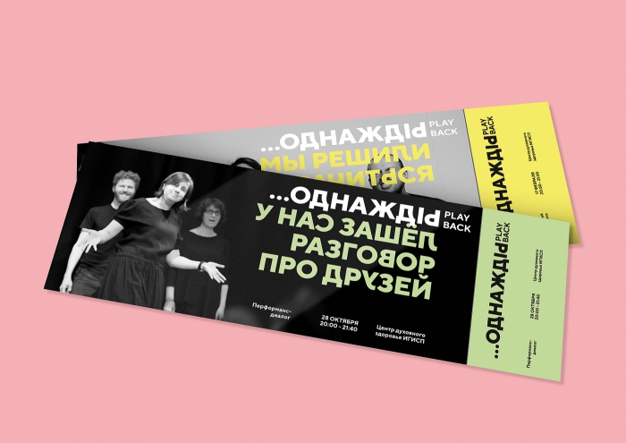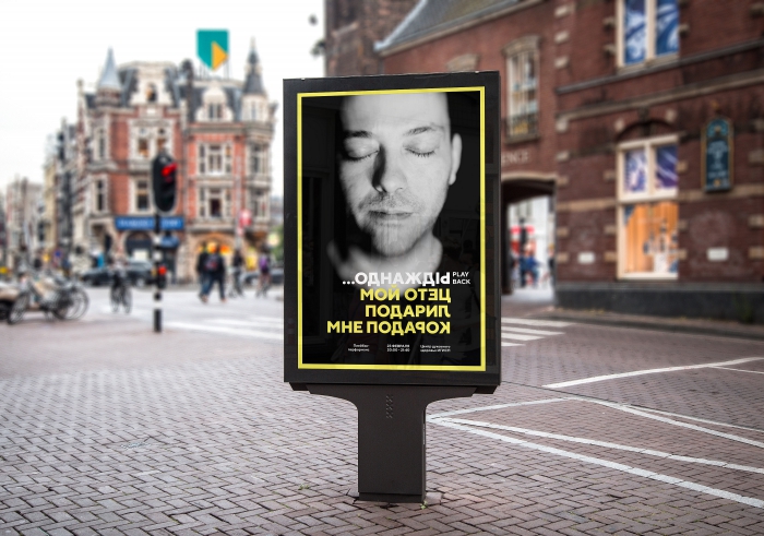 Каждая встреча актёров со зрителями – это уникальная история, которая никогда не повторяется. И каждая такая история начинается со слова «Однажды…». Для того, чтобы объяснить идею плейбэк-театра в графике, DDVB повернули буквы в словах – так же, как переворачивают и возвращают зрительские истории актеры на сцене.