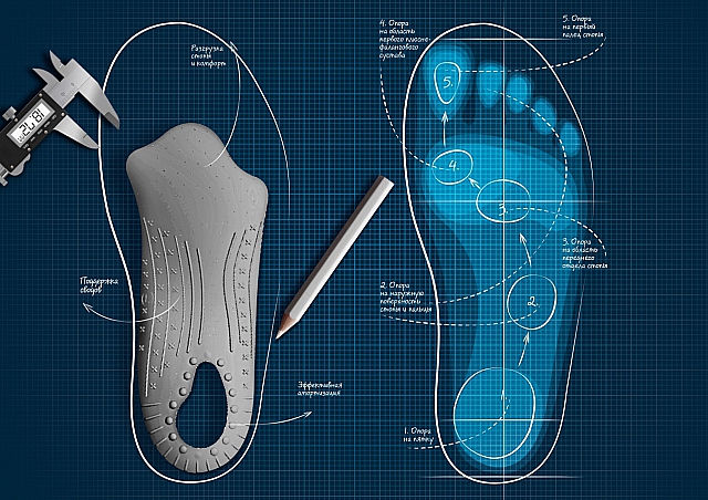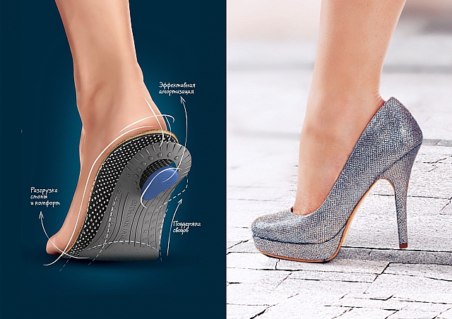 Для того, чтобы показать все возможности индивидуальной стельки Ortmann Pro, было создано ее послойное изображение в виде понятной конструкции с разнесенными в пространстве составными частями. При этом сама стелька остается расположенной на ноге, чтобы каждый человек мог легко понять, как и в каких местах стопы работают новые технологии. Линии, стрелки и схематичные изображения стельки и стопы, нарисованные от руки, подчеркивают человеческую составляющую бренда — это технологии, которые разработаны экспертами-людьми для людей, нуждающихся в профессиональной помощи ортопеда.