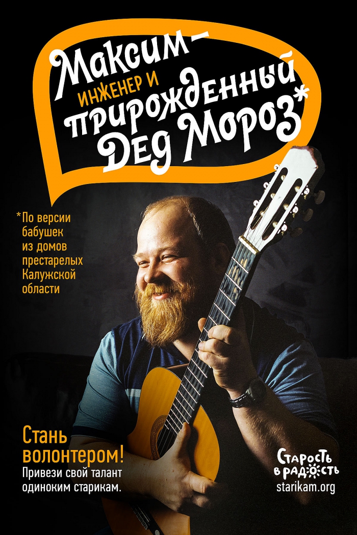 С помощью серии принтов с реальными волонтерами фонда, которые являются обычными людьми, но раскрываются в ярких необычных амплуа, была выстроена позитивная коммуникация, которая драйвит становиться волонтерами, приезжать к одиноким бабушкам и дедушкам и делиться с ними своими умениями и талантами.