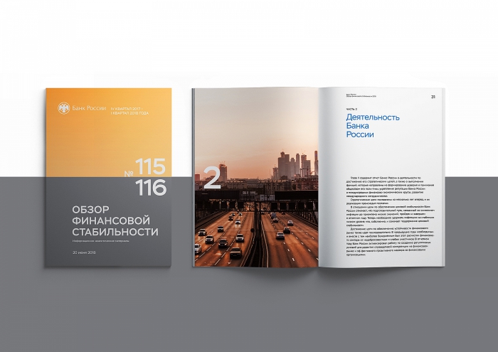 Коммуникационная стратегия Центрального банка подразумевает высокую активность в создании многостраничных изданий. Важно было продумать образцы для всех возможных изданий организации — и внутрикорпоративных, и рассчитанных на внешний контекст. Такая подробная работа помогла сформировать полноценную библиотеку шаблонов, которая существенно облегчит дальнейшее управление коммуникациями Банка России на всех уровнях.