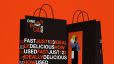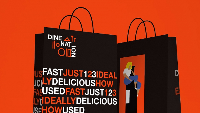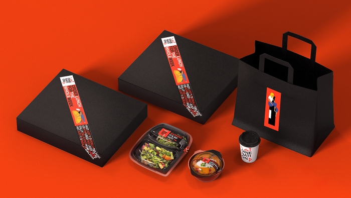 Динамически изменяющийся логотип компании легко адаптируется под любой формат рекламного или имиджевого материала. Ломаная типографика и разные наборы столовых приборов символизируют гибкость подхода компании к обслуживанию своих клиентов.