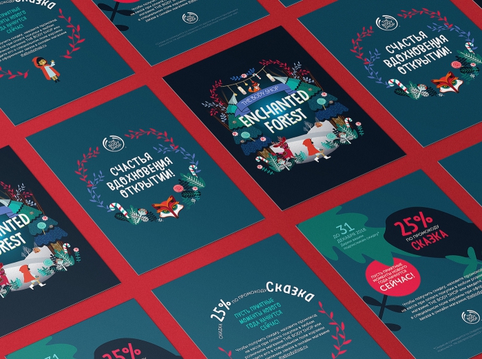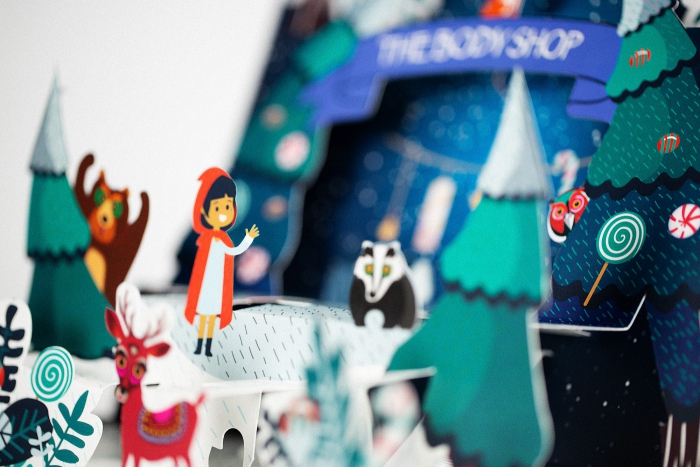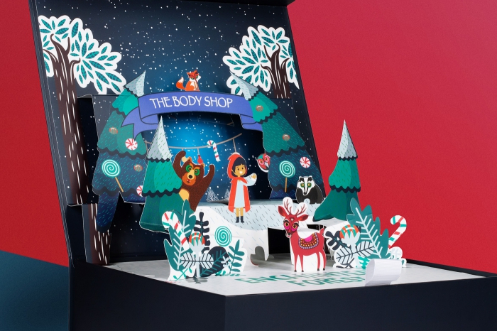 Сказка перестает быть выдумкой, когда обладатель заветного набора обнаруживает под панорамой продукты для тела и душа с ароматами лесных сладостей. Впечатление усиливает подарочная кружка со сказочной иллюстрацией и серия костеров с рецептами горячих новогодних коктейлей, вдохновленных ароматами лимитированных средств The Body Shop.