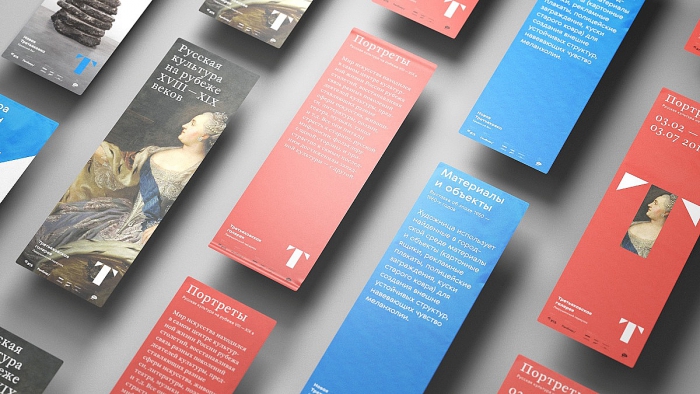 Новым логотипом стала буква «Т», которая и раньше использовалась в коммуникациях музея. По задумке дизайнеров «Т» - можно легко вписывать в цифровые коммуникации и «заполнять» разными произведениями. Таким образом, буква становится «окном в мир русского искусства, в котором появляются картины, скульптуры, инсталляции, люди».