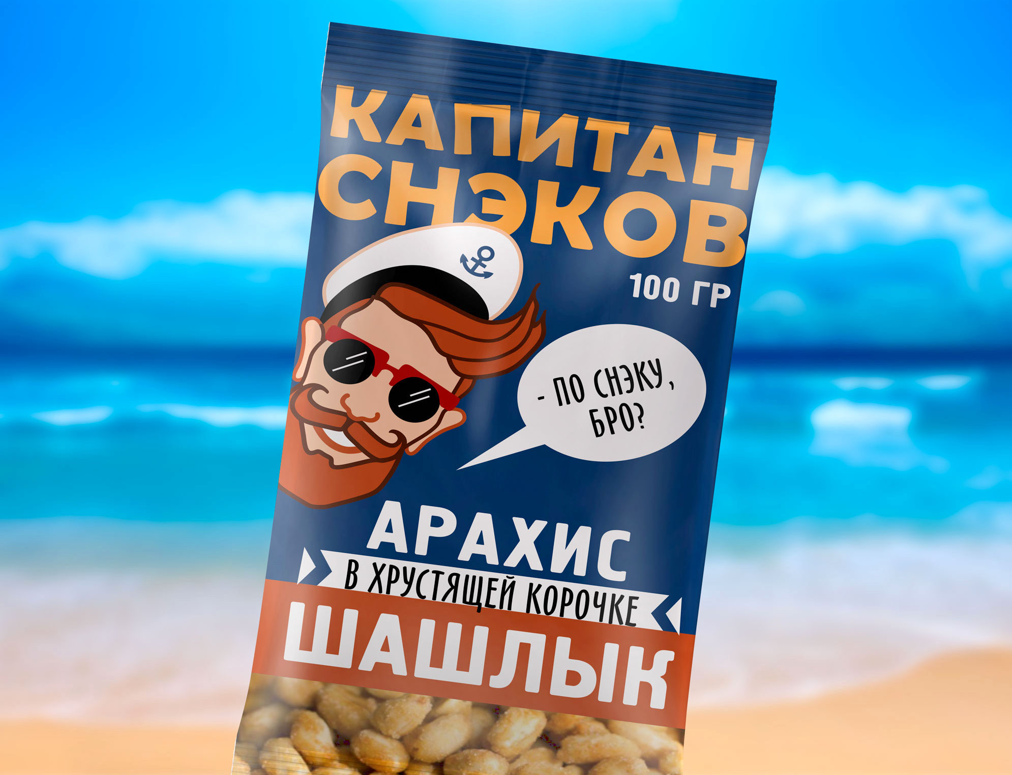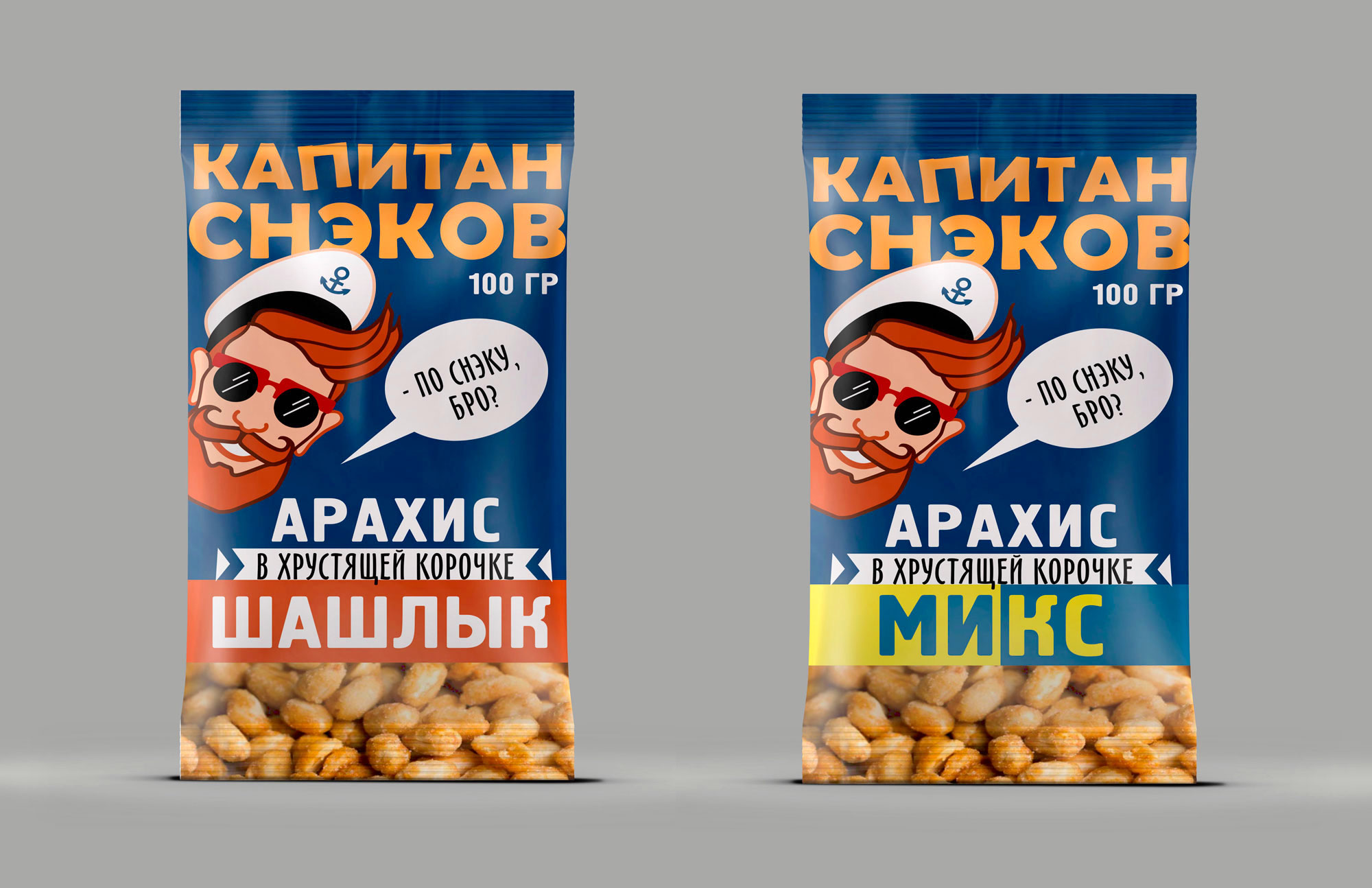 Заказчик, «Восточный Альянс Групп» — опытный поставщик и производитель разнообразных деликатесов, снэков и пивных закусок на российский рынок. Для линейки фасованных снеков из орешков потребовался бренд. Мы рассмотрели несколько вариантов имен, и остановились на нейме КАПИТАН СНЭКОВ, поскольку в перспективе вероятно развитие марки в сторону снеков из рыбы и морепродуктов. Такую широту ассортимента способен объединить капитан, который на своем судне вполне может перевозить и орешки, и рыбку, и чипсы.