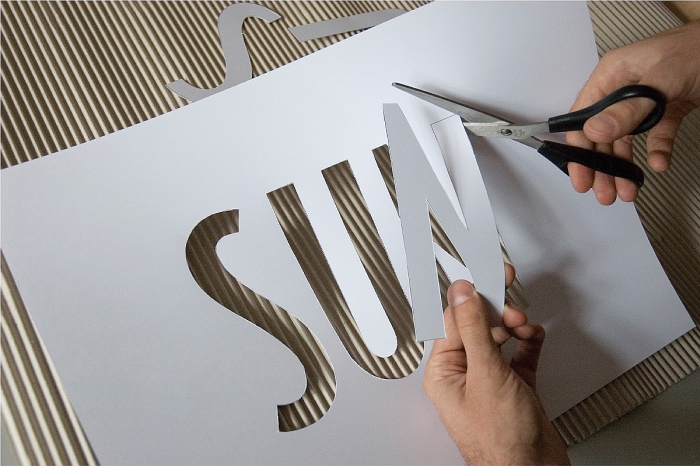 Знак, полученный с помощью трафарета и солнца, бесконечно трансформируем.