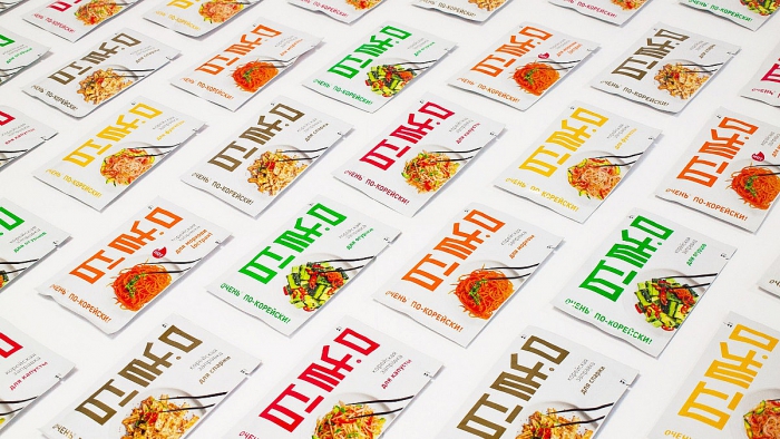 Это передаёт имя бренда «Очень», которое в логотипе представлено леттерингом, имитирующим корейские иероглифы. Сделать правильные выводы и прийти к правильным ассоциациям потребителю помогает слоган «Очень по-корейски».