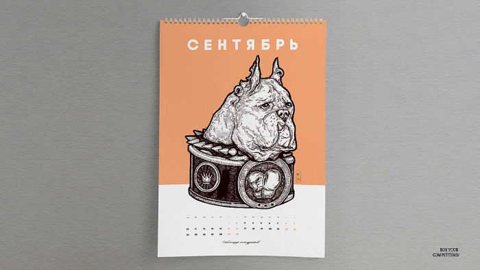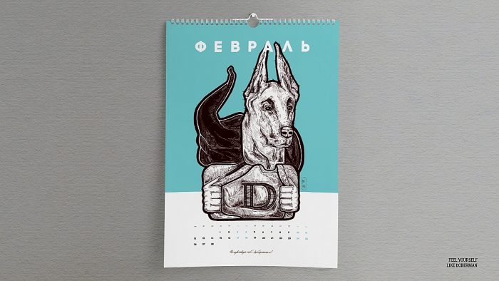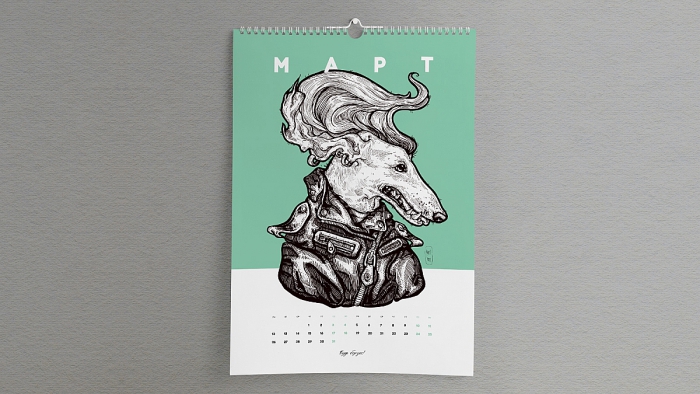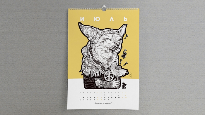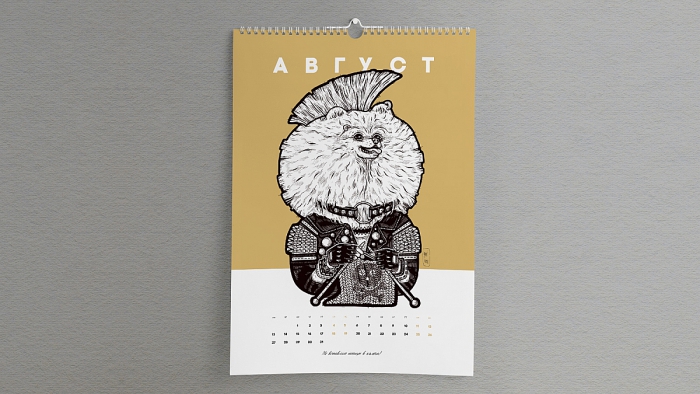 В календаре мы собрали целую банду из 12 пород собак и обыграли их вербально и визуально. Наши собаки не кусаются, а скорее наоборот – с каждой страницы календаря дают полезные советы, как