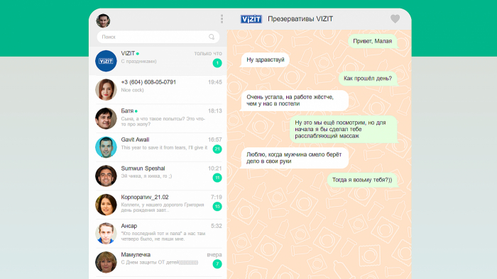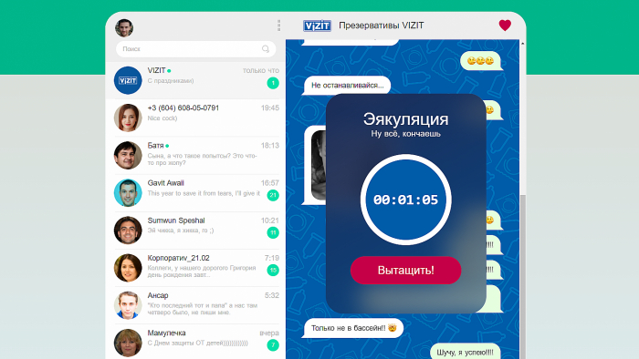 Бренд презервативов Vizit 1 июня запустил акцию «День защиты от детей». В честь этого компания сделала интерактивную игру в формате диалога в мессенджере. По словам авторов, игра позволяет проверить скорость реакции, таким образом напоминая пользователям о том, что прерванный половой акт — это ненадежный метод контрацепции.