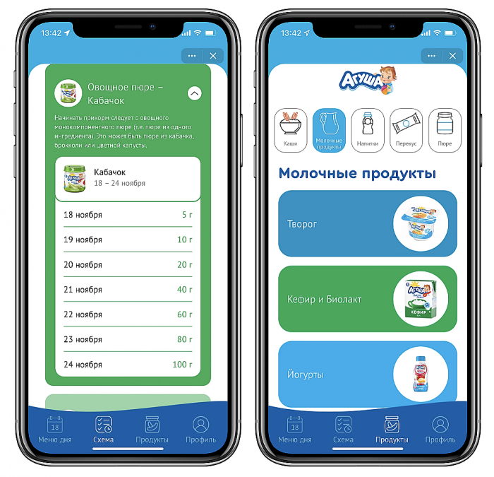 Летом 2021 года во «ВКонтакте» впервые появилось мини-приложение, которое подскажет родителям, как правильно вводить новые продукты в детское меню с учетом индивидуальных потребностей. «Календарь прикорма», разработанный брендом «Агуша» совместно с агентством MAXimize и Mindshare.Сontent+, а также врачом-педиатром в соответствии с рекомендациями Национальной программы оптимизации вскармливания детей первого года жизни в РФ, поможет спланировать этот процесс и создать индивидуальные меню и график для ребенка.