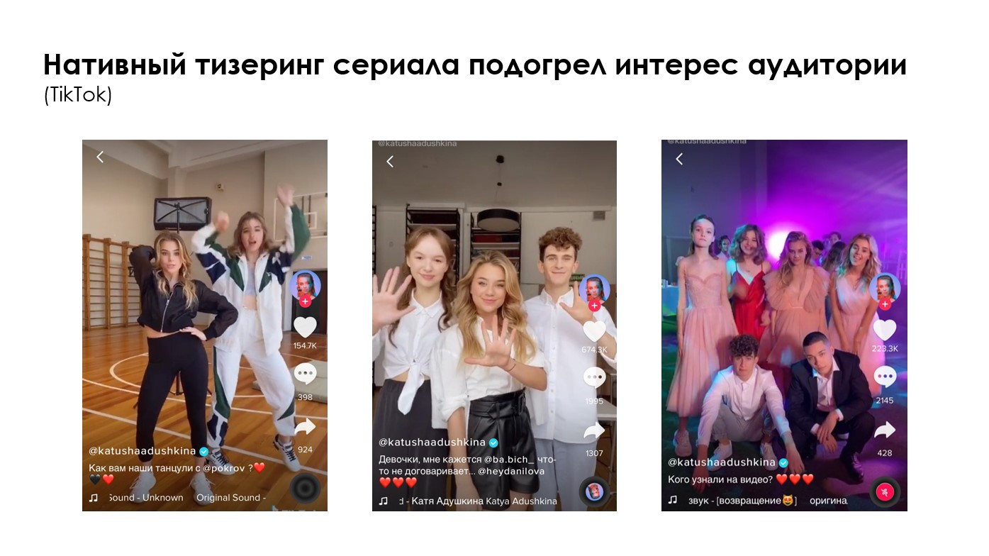 Мини-игры с призами от бренда, связанные со сценариями серий, дополнительно погрузили пользователей в сюжет сериала, выстроили прямую интерактивную коммуникацию с тинейджерами и привлекли внимание к аккаунту бренда. Четыре игры собрали 210 тыс. показов, 193 тыс. охват, 16,8 тыс. лайков, 7,9 тыс. комментариев и 1,5 тыс. сохранений.