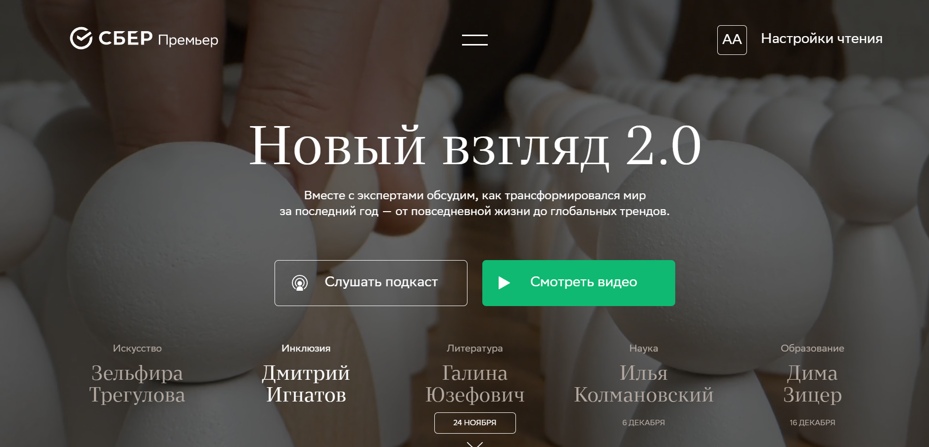 Новый сезон проекта получился более инклюзивным: дизайн проекта создан по нормативам, разработанных на основе масштабных внутренних исследований команды «Сбера». Контент от банка на проекте доступен и слабовидящим и слабослышащим людям.