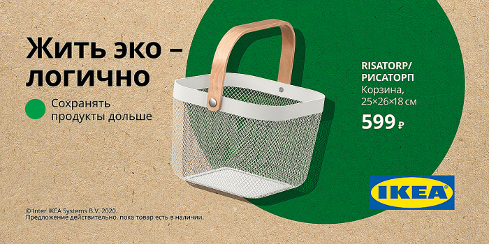 На улицах российских городов кампания привлекала внимание к теме осознанного потребления с помощью оригинального слогана «Жить эко — логично» и тезисов о том, как конкретный товар IKEA будет способствовать этому.