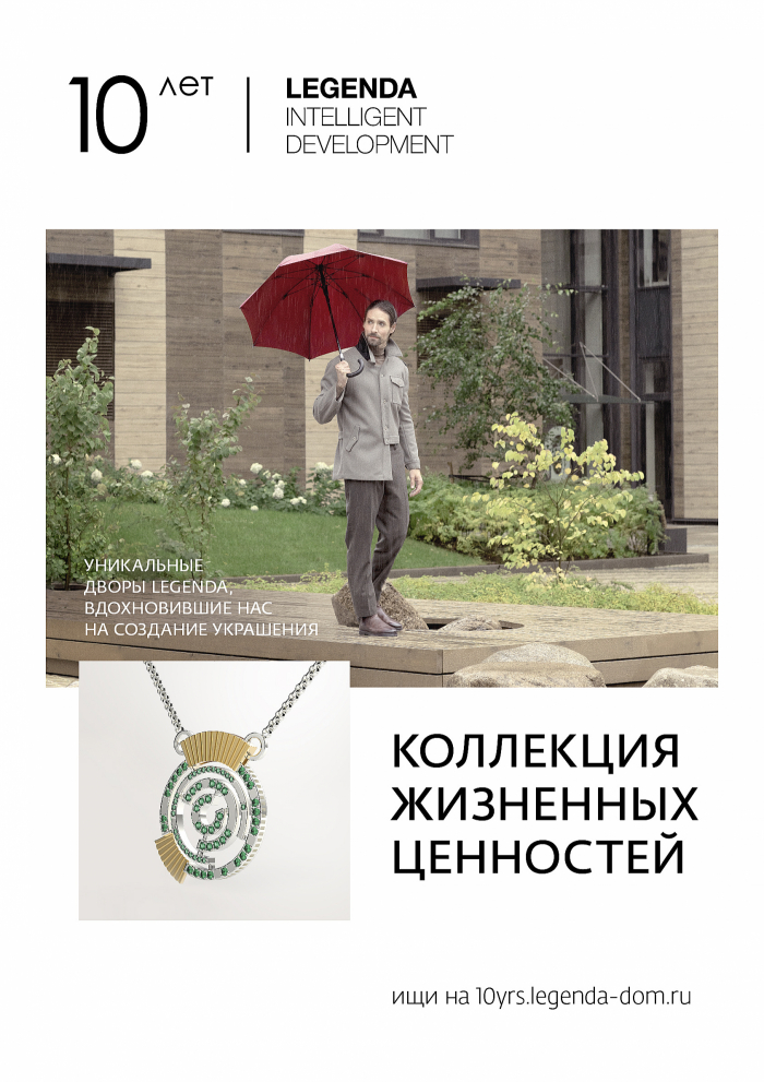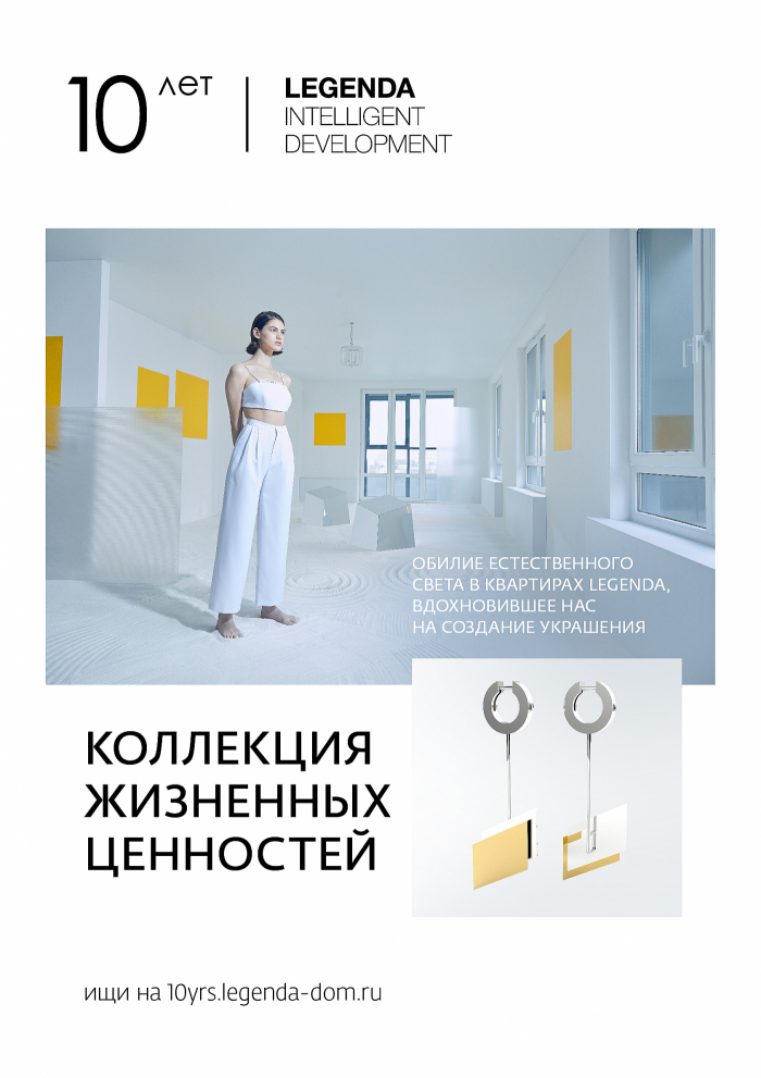 В честь 10-летия застройщика-трендсеттера Legenda агентство запустило имиджевый фэшн-проект. В коллаборации с ювелирным брендом они выпустили лимитированную коллекцию ювелирных украшений, вдохновленных созданными инновациями бренда: первые дворы без машин, мастер-спальни, большие окна, общественные пространства. Новые ценности для жизни воплотили в ценностях ювелирных.
