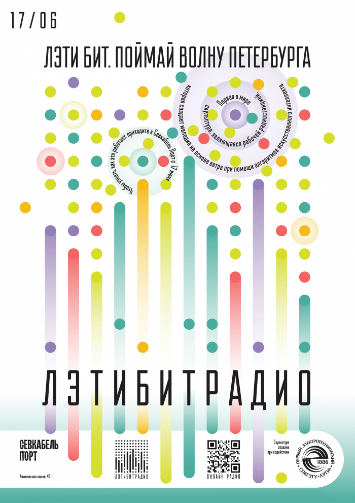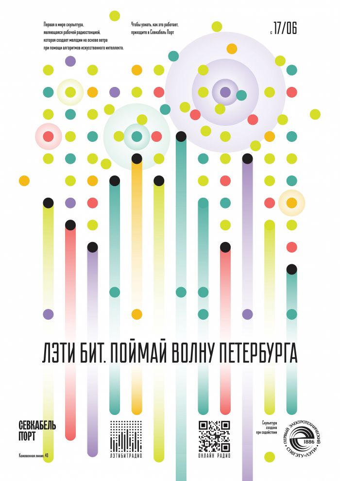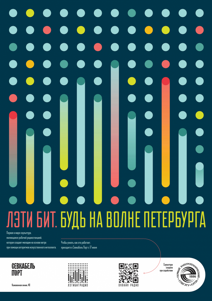 17 июня в Санкт-Петербурге на территории Севкабель Порта появилась первая в мире скульптура, создающая с помощью ветра и технологий искусственного интеллекта музыкальные композиции для онлайн-радиостанции Санкт-Петербургского государственного электротехнического университета «ЛЭТИ».