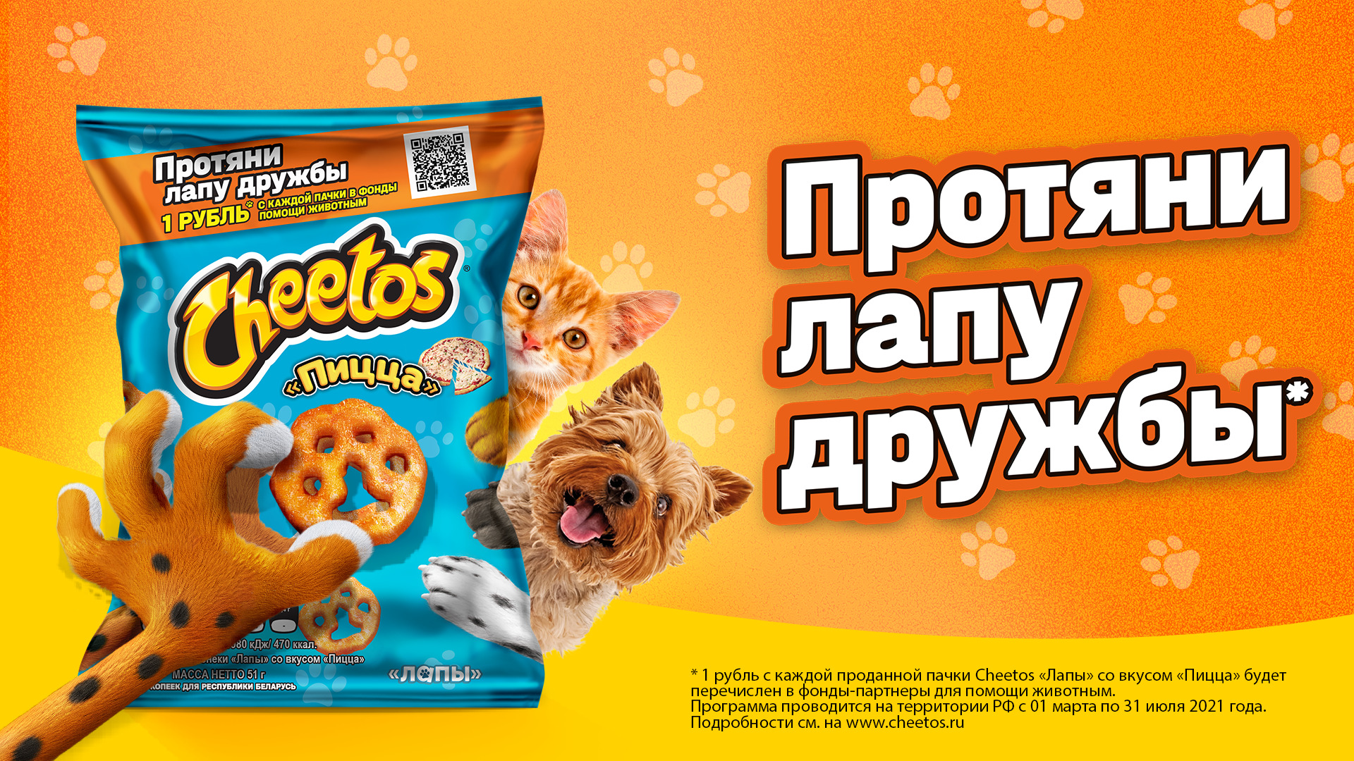 Протяни лапу дружбы» с Cheetos — кампания, направленная на привлечение внимания подростков и их родителей к социальной проблеме помощи бездомным животным в России.