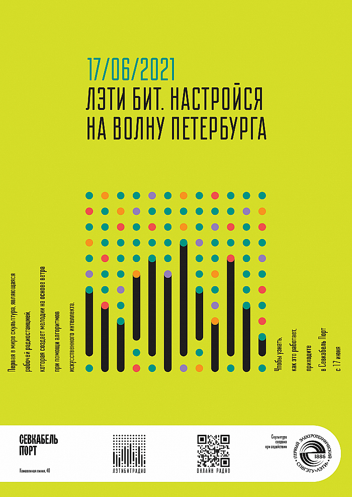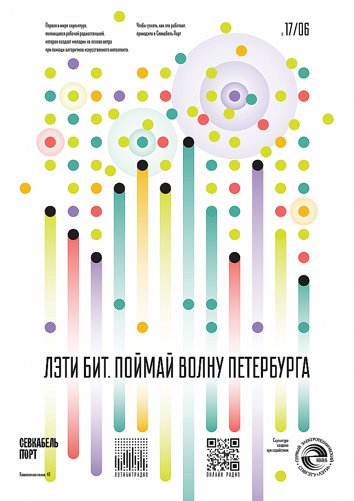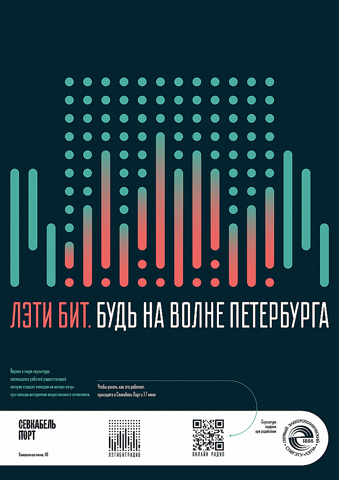 17 июня в Санкт-Петербурге на территории Севкабель Порта появилась первая в мире скульптура, создающая с помощью ветра и технологий искусственного интеллекта музыкальные композиции для онлайн-радиостанции Санкт-Петербургского государственного электротехнического университета «ЛЭТИ».