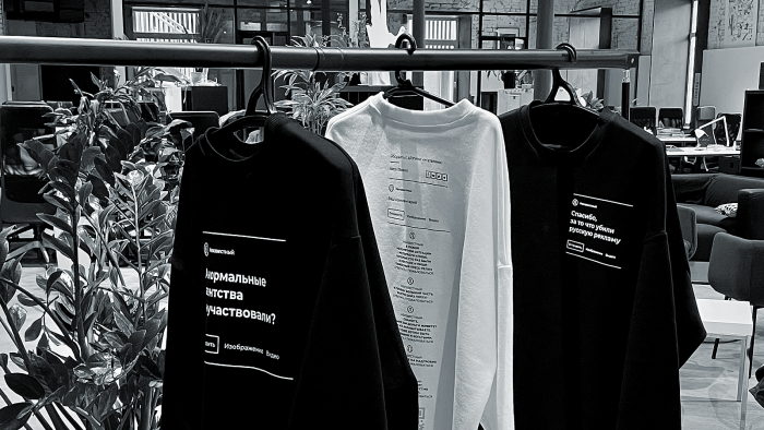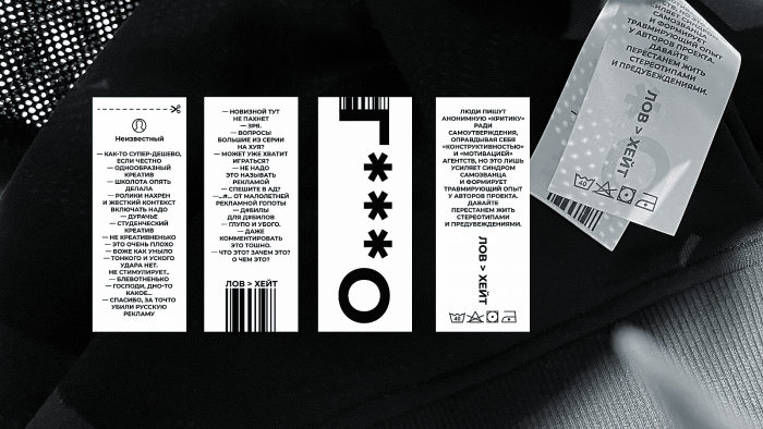 Креаторы представили первый официальный мерч с неожиданным дизайном — в качестве принта были выбраны токсичные комментарии под кейсами агентства на Sostav. Так творческая группа хотела доказать силу любви через принятие негатива от читателей и других игроков индустрии.