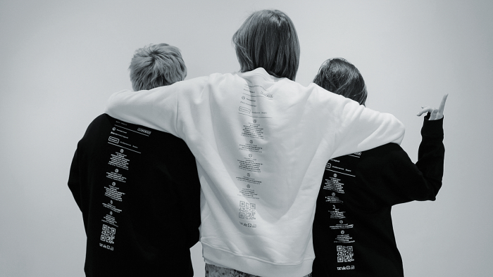 На свитшотах можно найти QR-код, который ведёт на страницу с кейсами Possible. Он был сделан из рефлектива, чтобы «подсветить» достижения команды.