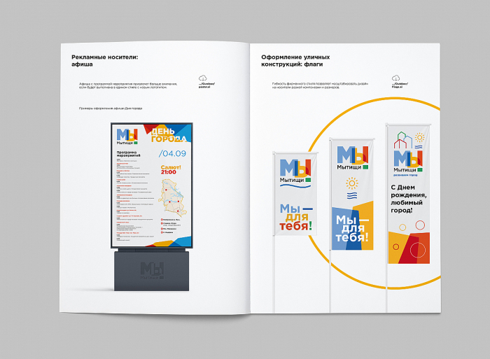 При разработке айдентики дизайнеры решили отойти от историзма и заложили в концепцию сильный социальный посыл: единение, проактивность и оптимизм жителей городского округа.