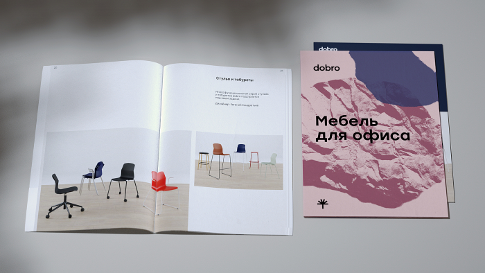 Компания обратилась в Nimax с задачей разработать с нуля визуальную концепцию бренда, которая отразит его философию: «Dobro — модульная офисная и домашняя мебель высокого качества». В основе бренда лежит принцип базовости с возможностью расширения функциональных и эстетических свойств продукции.