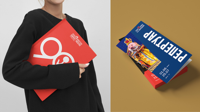 Айдентика продумывалась таким образом, чтобы ее было возможно адаптировать для любого носителя. Команда дизайнеров сделала это для деловой документации (бланки, папки, визитки и бейджи), печатных носителей (театральная программка, буклет и билет), имиджевые носители (афиша, репертуарный лист, баннер и уличная вывеска), а также для сувенирной продукции в виде футболок, пакетов, экосумок и ручек.